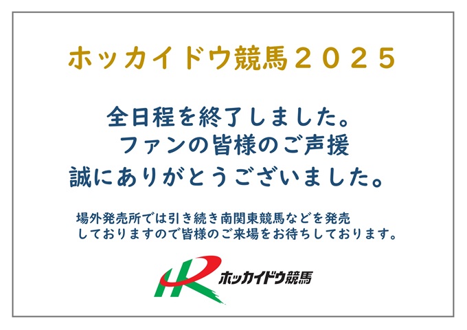 ホッカイドウ競馬J-PLACEでのJRA発売対象競走の変更についてホッカイドウ競馬J-PLACEでのJRA発売対象競走について令和7年8月23日(土)より以下のとおり変更します。