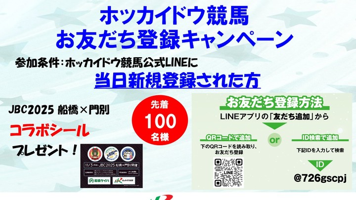 ※ ホッカイドウ競馬公式LINEの新規登録者先着100名にJBCステッカープレゼント
