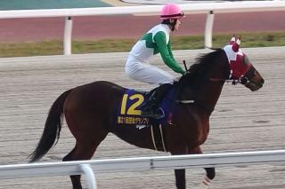 「調教の動きは良かったんですけど、レースに行くとピリッとした所がなかったので、道営スプリントで着けていたブリンカーを外してレースに臨みました。ジョッキーには、『ポジションは問わないが、気を抜くところがあるのでテンは出していってほしい』というオーダーを出していたのですが、速かったぶんハナに立つという選択になったのでしょう。道中で遊ぶところがあるので、2着馬の2頭とびっしり競り合う形になったのは、この馬にとって有難かったですね。次走については戻ってからの体調次第ですが、スペシャルエックスと共に年末の兵庫ゴールドTへ向かえればと考えています。」