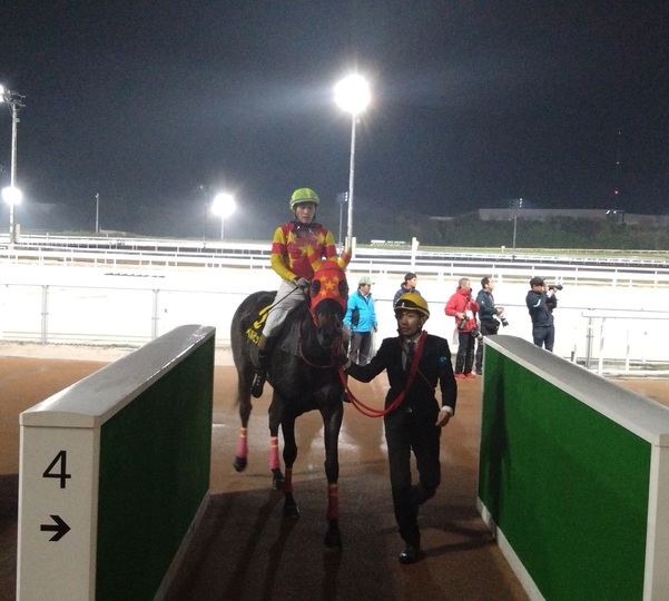 「道中、デルマソトガケの外をずっと回る形になり、門別では、そういうレースをしていないので、馬が気にしながら走っていました。これが、内と外が逆だったらなぁ、と思います。これなら3番枠の方が良かったですね。でも、レース内容は、よく頑張ったと思います。道営記念の時の状態はキープできていました。