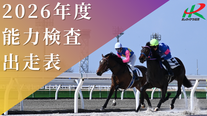 2026年度 能力検査出走表 その他 2026.03.24 3月26日分 3月20日分 3月19日分 3月13日分 3月12日分 能力検査については、【公式】ホッカイドウ競馬LIVE「なまちゃき」(YouTube)において、LIVE中継を配信します。 ◆番組詳細◆ タイトル :ホッカイドウ競馬【門別競馬場】能力検査LIVE 放送日時 :能力検査当日の第1競走発走の30分前から 視聴URL:https://www.youtube.com/@live2820/streamsから ※番組の内容については、変更になる可能性があります